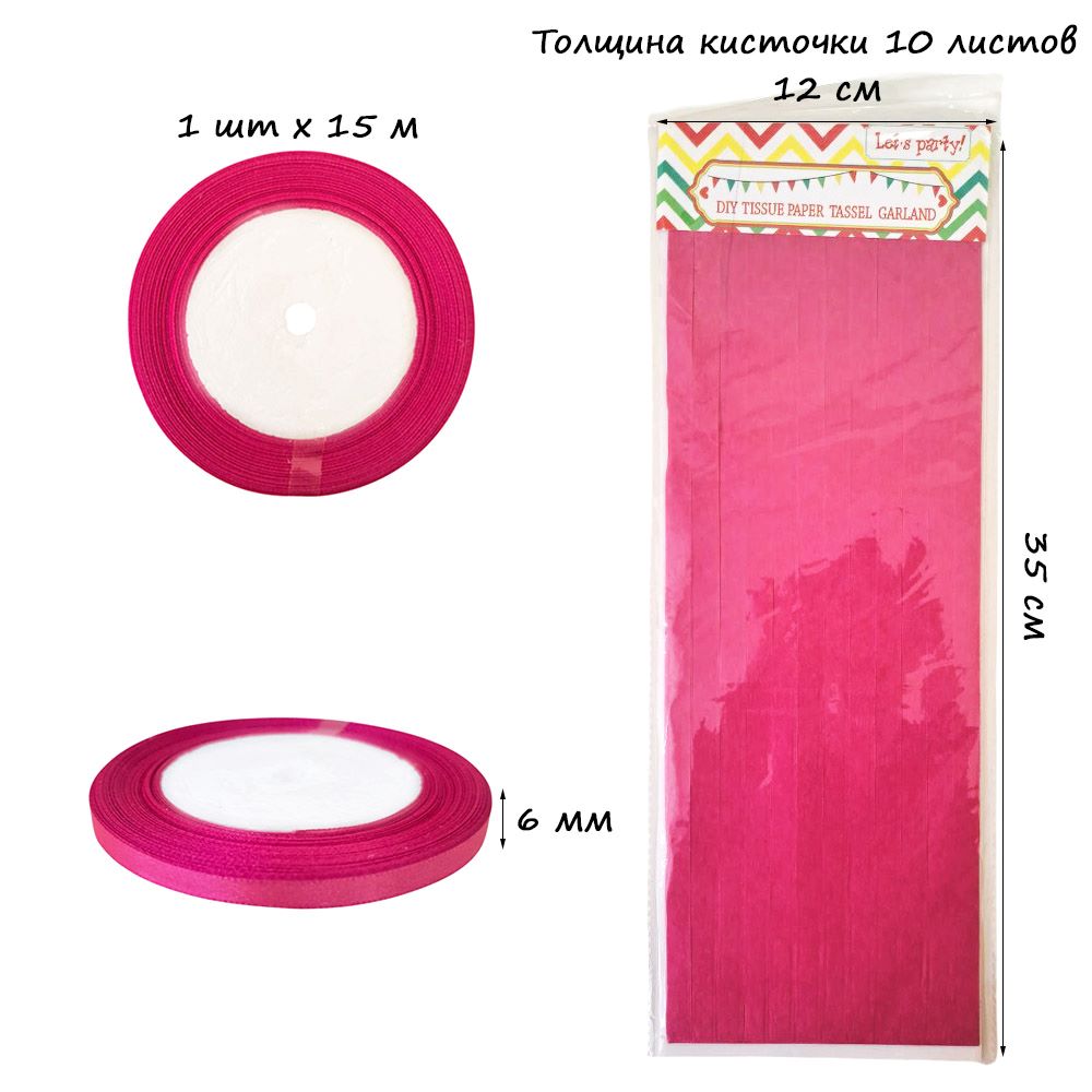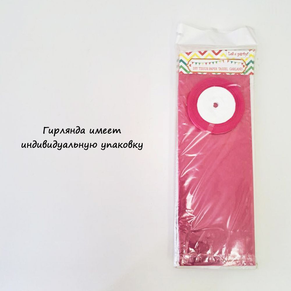 Гирлянда тассел 12 кисточек по 10 листов, малиновый