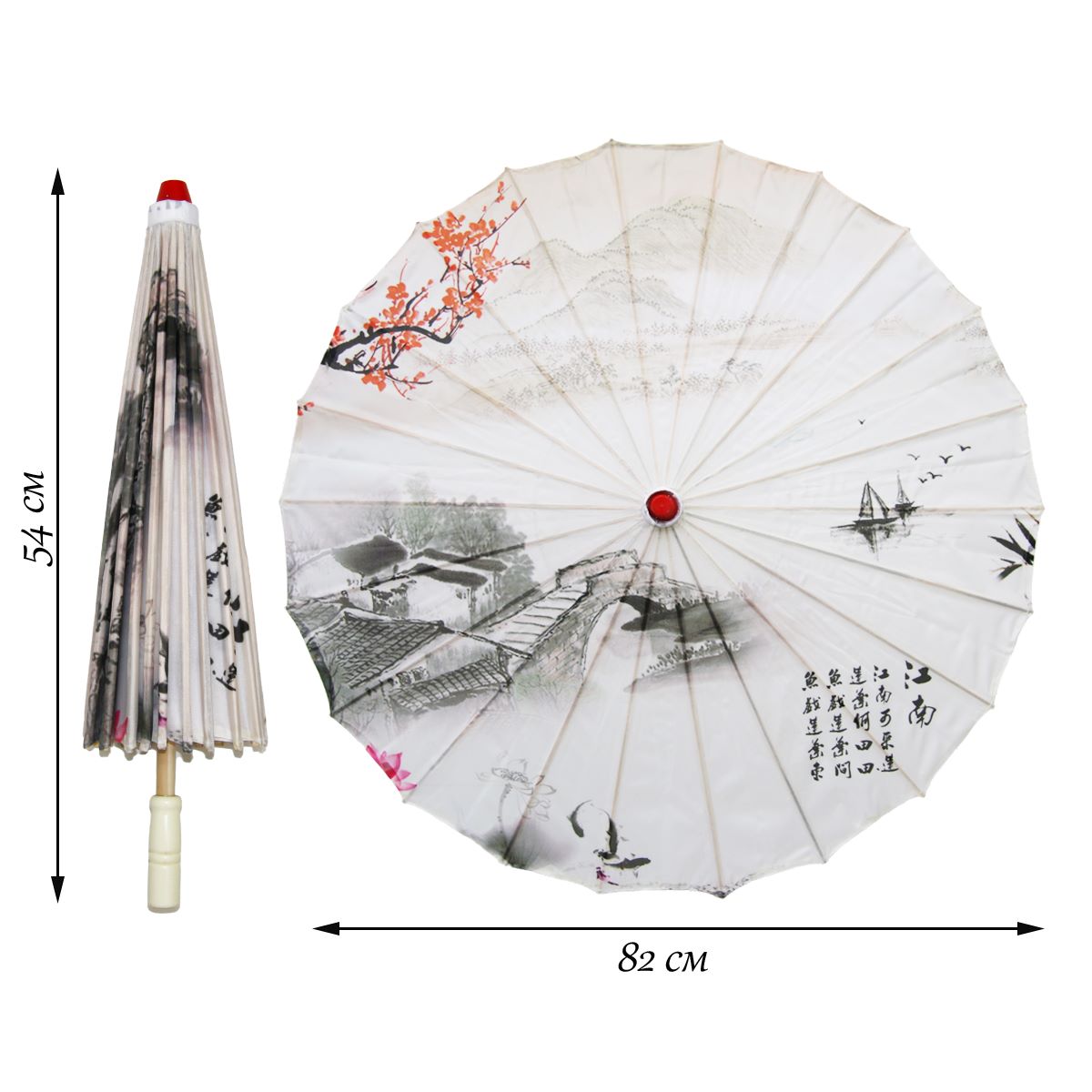 Китайские тканевые зонтики цветочные 82х54 см