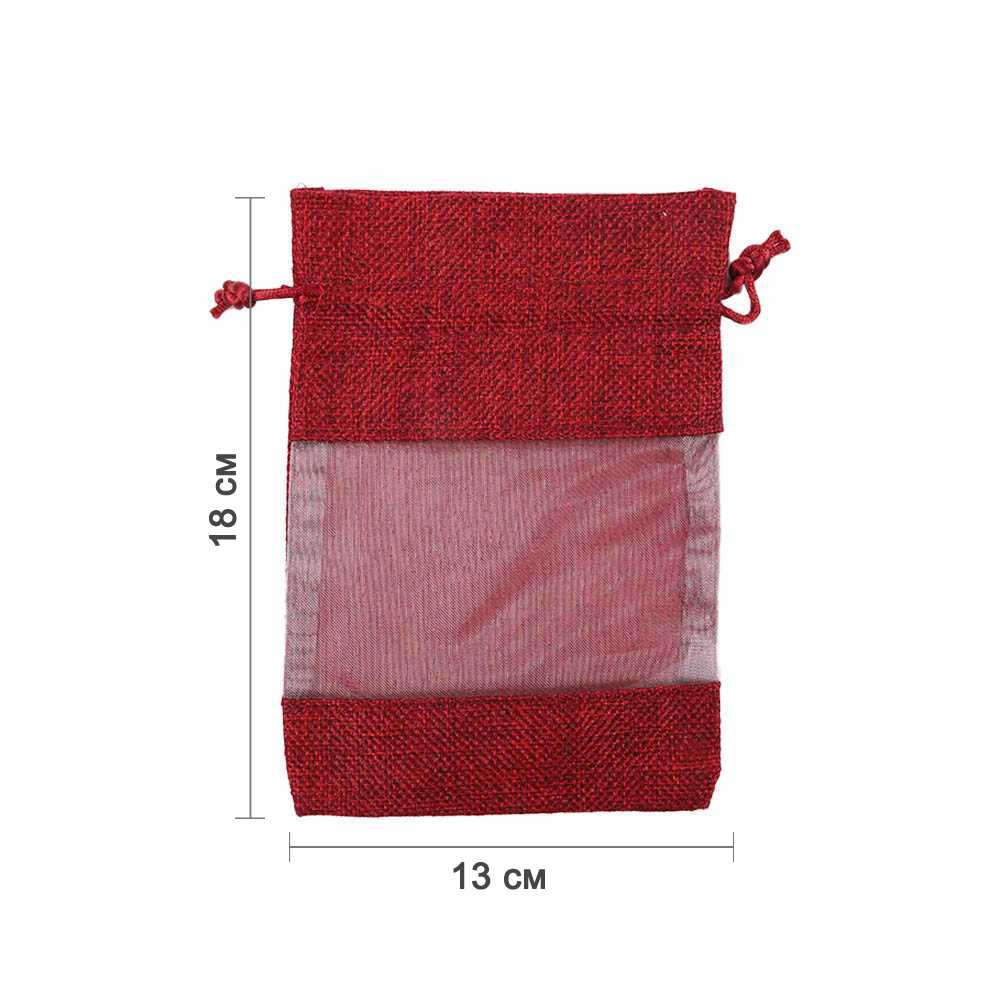 Мешочек из мешковины и органзы 13х18 см бордовый