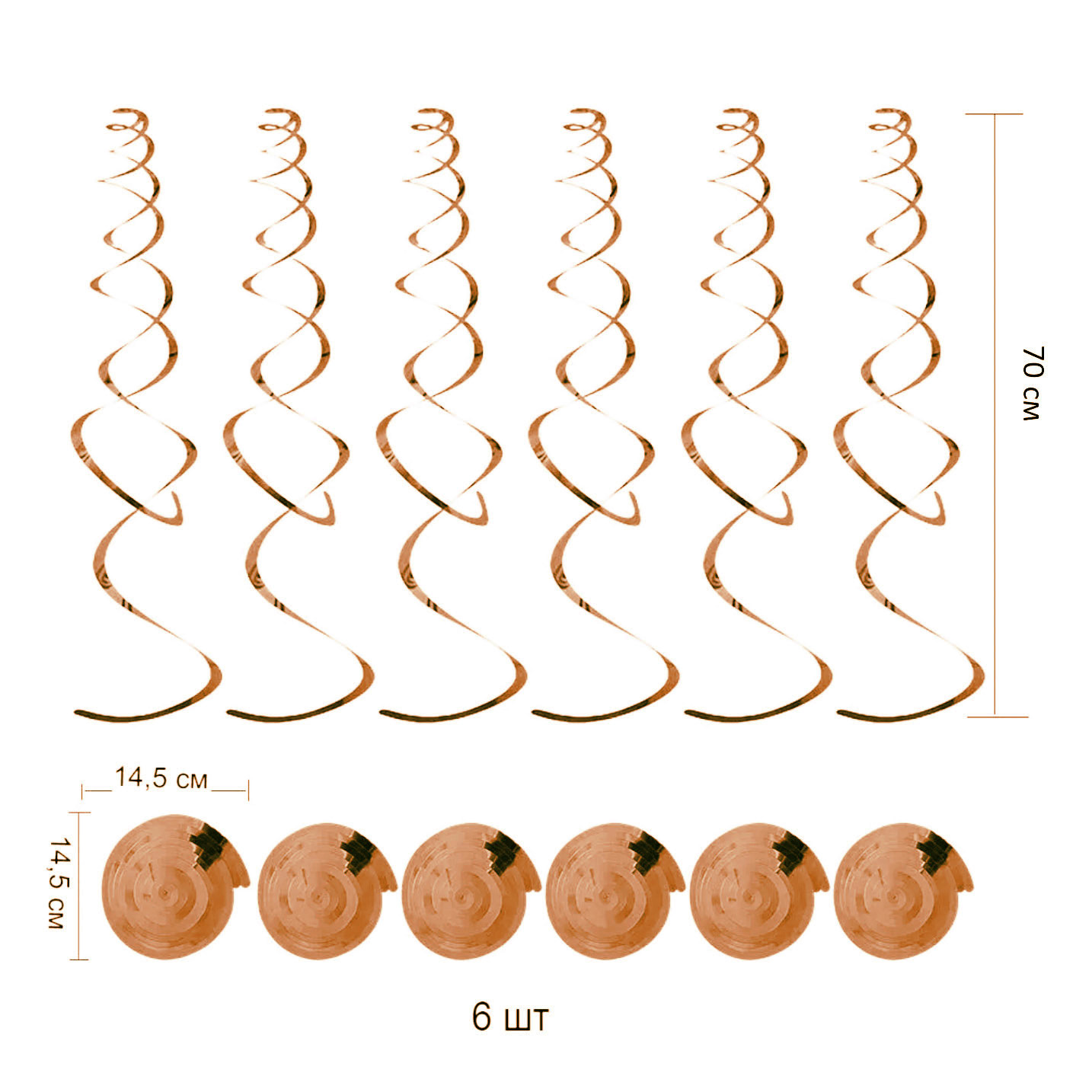 Спираль пластиковая 70см 6шт, оранжевый