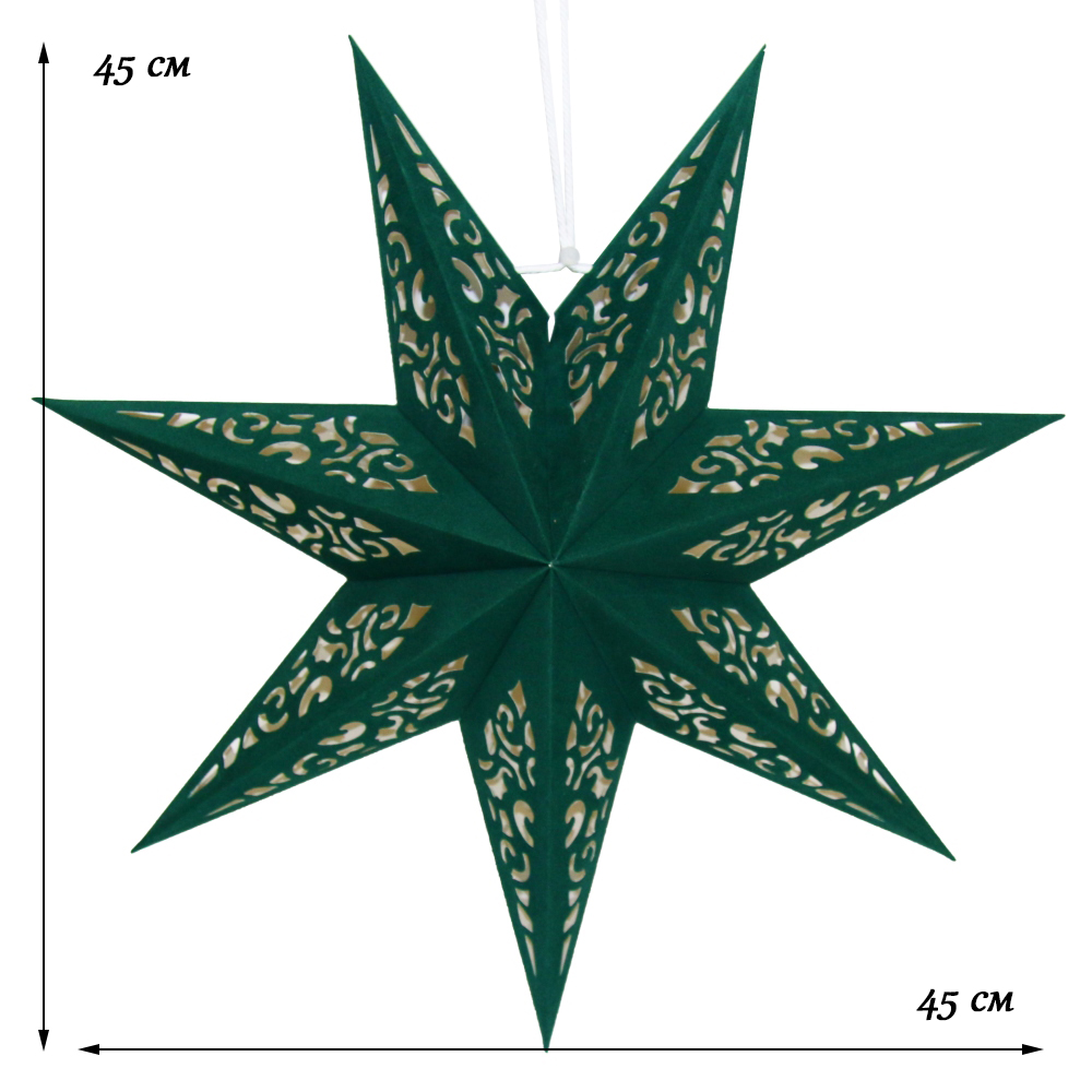 Звезда семиконечная из бархатной бумаги 45 см, Вензель, зеленый